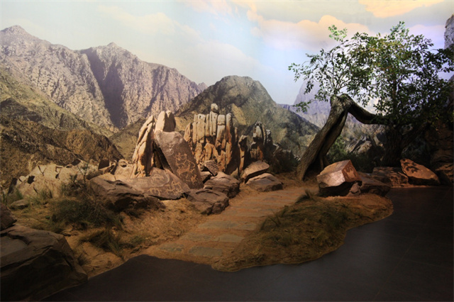 巖畫被史學界喻為“形象的語言,藝術的史詩”。巖畫作為包頭博物館的特色展品之一,記錄著古代北方游牧民族生產(chǎn)生活的點點滴滴,展現(xiàn)了北方游牧民族發(fā)展的艱辛歷程和連續(xù)篇章。包頭博物館努力為廣大觀眾營造沉浸式觀展體驗,巧妙利用原展廳空間和斜坡式屋頂?shù)奶攸c,通過全景式立體展示的方式,營造出草原大漠神秘而幽遠的氛圍,通過再現(xiàn)巖畫的生成環(huán)境,帶給觀眾身臨其境之感,使觀眾在“天人合一”的藝術意境中,感受回歸大自然的夢幻感覺,體味巖畫的獨特藝術,領略古代文明的魅力。