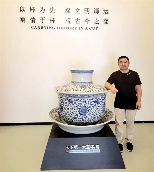 日前,記者走進(jìn)杯子博物館,展廳門口醒目的“天下第一大蓋杯/碗”是在江西景德鎮(zhèn)歷時兩年燒制而成的,這是目前國內(nèi)已知的最大陶瓷蓋杯/碗。