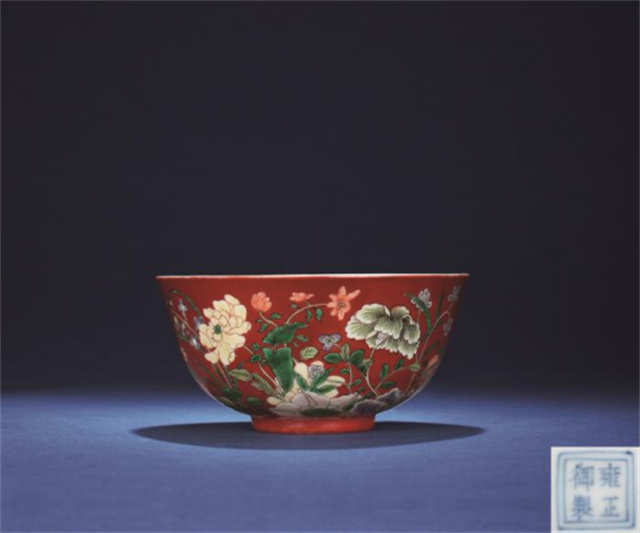 創(chuàng)作素材示例:珊瑚紅地五彩花卉紋碗 深圳和暢園博物館藏