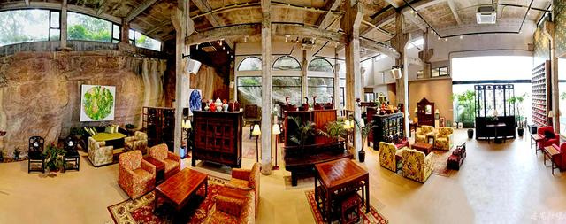 維波樓8號(hào)館的工作人員向記者講述了該館的故事。有一位美國(guó)博物館館長(zhǎng)哈維先生,在深受中國(guó)民間家具藝術(shù)的感染后,與他的妻子姚小波老師,花了33年時(shí)間在中國(guó)各處收藏舊家具,對(duì)它們進(jìn)行修復(fù)、翻新、二次創(chuàng)作。并開(kāi)設(shè)了多家維波樓博物館,用來(lái)展示這些年來(lái)他們的成品。在一次機(jī)緣巧合下,九灃時(shí)尚企業(yè)董事長(zhǎng)王倍林女士接觸到該家具文化后,深受感觸,向哈維夫婦收藏了大量家具,最終在石樓鎮(zhèn)蓮花山開(kāi)設(shè)了維波樓8號(hào)館。“說(shuō)起選址,王倍林費(fèi)盡了心思,她找了很多處地方都覺(jué)得不合適,直至來(lái)到蓮花山腳下。
