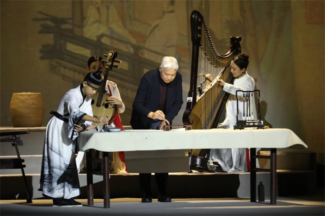 當國寶和國樂同時出現(xiàn)在舞臺上,會產(chǎn)生怎樣的火花?10月28日至11月1日,上海博物館攜手上海民族樂團跨界合作,推出了令人耳目一新的“海上生民樂——上海博物館建館70周年文物民樂展演”。