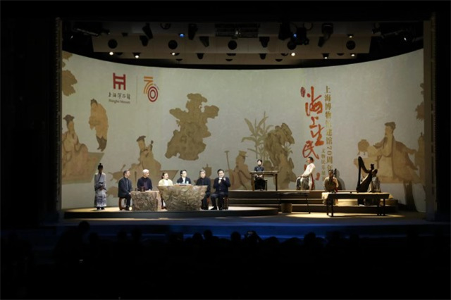 記者在現(xiàn)場看到,展演分為“海上雅集”“民樂表演”兩部分。其中,“海上雅集”由主持人曹可凡攜手五位上博專家——陳克倫、陸明華、劉一聞、凌利中、施遠與民樂藝術家進行文物和民樂的交流融匯,帶領觀眾走進中國雅集文化。