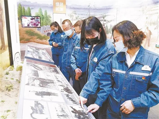 在七師胡楊河市文化館,新疆北方建設(shè)集團(tuán)三利公司的黨員們聆聽革命故事,感受軍墾文化(資料圖片)。