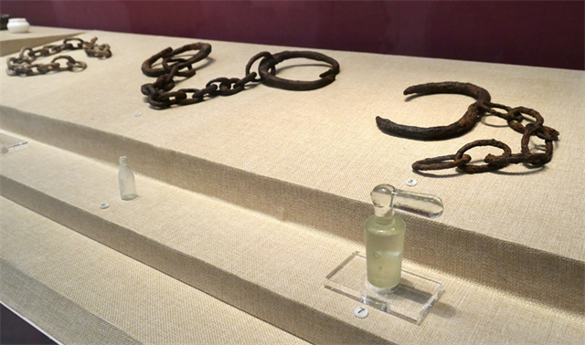 博物館開幕,南石頭監(jiān)獄遺址考古發(fā)現(xiàn)的腳鐐、藥劑瓶等一批出土文物首次面向公眾展出。