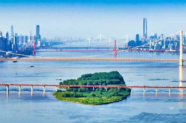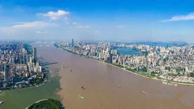 從高空遠(yuǎn)眺武漢長江兩岸,水清岸美,可一眼看到6座長江大橋。