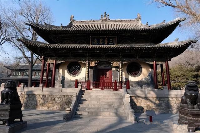 北部從文昌宮起,經(jīng)過東岳祠、關(guān)帝廟、三清洞、唐叔虞祠、朝陽洞、老君洞、云陶洞、財(cái)神洞、待鳳軒、三臺閣、讀書臺、呂祖閣。這個(gè)組團(tuán)的建筑隨著背后所依的山勢層層疊疊,參差錯(cuò)落,由自然地形圍合了一處幽靜獨(dú)立的空間,使建筑空間與自然景觀融為一體,殿堂樓閣在山林植物的掩映中若隱若現(xiàn)、錯(cuò)綜排列,以崇樓高閣為最盛。北部建筑整體給人整齊統(tǒng)一,規(guī)則有序的感覺,隨山勢而形成了統(tǒng)一而又變化的一系列空間,緊湊有致,井然有序。