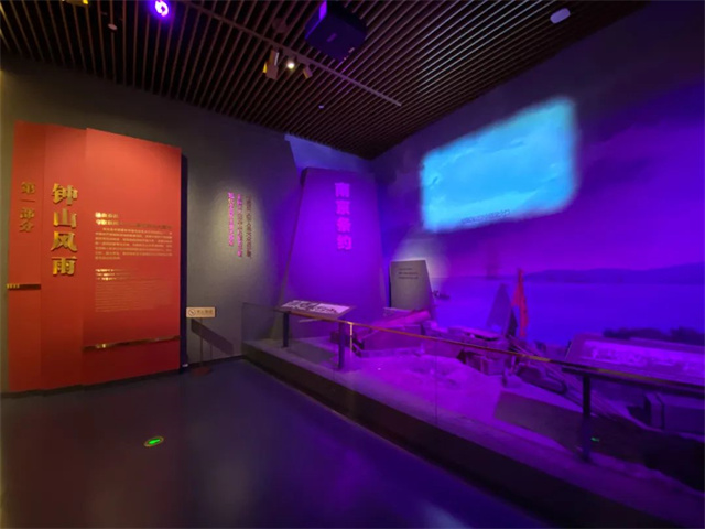 以百萬雄師渡江為背景,以“渡江戰(zhàn)役的勝利是靠老百姓用小船劃出來的”為統(tǒng)領(lǐng)。通過專題短片、圖文展板、信息帶、珍貴文物展示等逐次展現(xiàn)人民解放軍炮擊紫石英號(hào)、渡江第一船的“京電號(hào)”小火輪、南京渡江第一船船工童達(dá)興等。紅旗插上總統(tǒng)府板塊,通過總統(tǒng)府模型、多媒體投影、語音播報(bào)等手段,宣告國民黨反動(dòng)統(tǒng)治的覆滅。