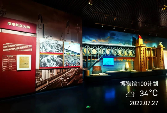 以南京人的視覺,通過長江掠影全景畫、大橋模型等比例縮比復(fù)原、南京長江大橋?qū)n}影片、陣列排放的大橋建橋時(shí)的文物實(shí)物,立體化展現(xiàn)了社會(huì)主義建設(shè)時(shí)期的偉大成就——南京長江大橋。