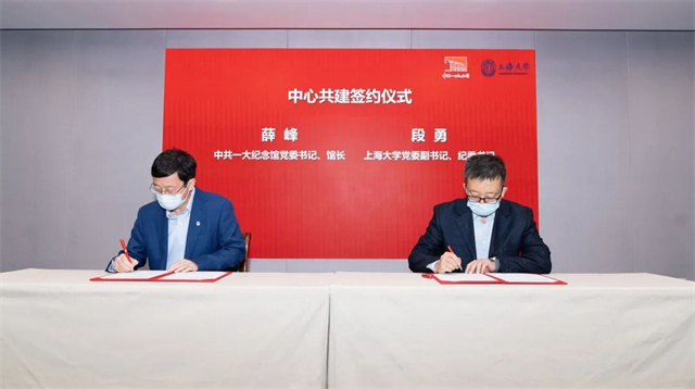 中共一大紀(jì)念館黨委書記、館長薛峰與上海大學(xué)黨委副書記、紀(jì)委書記段勇簽署共建革命文物協(xié)同研究中心協(xié)議。雙方將聚焦革命文物保護(hù)、闡釋、利用與傳播等發(fā)展方向,開展全面合作。